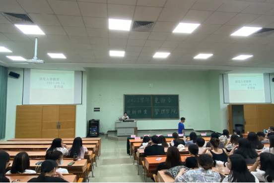 会议伊始,徐煜忻老师和李丹琪老师就疫情期间校园管控常态化、入学相关注意事项、心理健康教育、班级建设和紧急事件处理五个方面做了简要的介绍和说明。她们向同学们说明了学校疫情防控和校园管理相关要求,对同学们进行了开学防疫教育,提醒同学们禁止在学院封校时期随意进出校园。如出入校门,需严格按照学校规定的流程进行请假,经批准后才可离校。同时,两位老师对同学们进行了紧急事件的处理等方面的教育,如遇身体不适等紧急情况,可在前往校医开具病例证明后前往医院治疗。虽然疫情得到了控制,但是同学们仍要提高警惕,为自己和他人的健康负责。