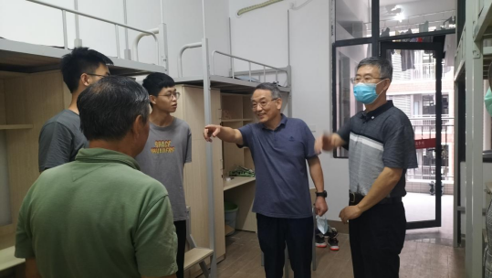 张捷校长等一行人走访了各栋学生宿舍,与同学们亲切交谈,询问他们的专业、家庭情况、入校感受等。他希望同学们可以尽快转变角色,熟悉校园环境,建立和谐友好的人际关系,勉励大家以积极的心态和良好的面貌适应大学生活。
