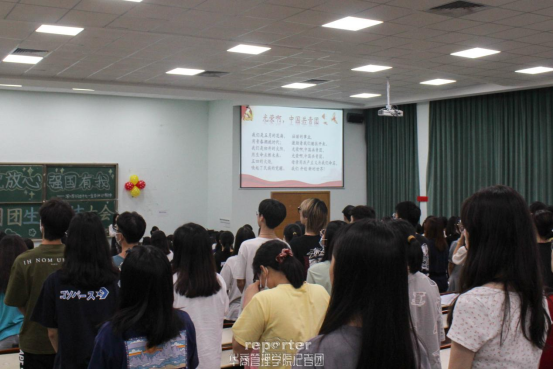 会议伊始,同学们情绪激昂地奏唱了团歌。