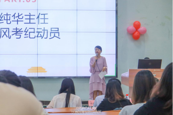 首先,由陈纯华老师作考风考纪动员。她强调考风考纪建设的重要性,呼吁同学们要严肃考纪诚信考试,同时也希望同学们能树立良好的考风考纪。最后她预祝同学们在期末考试中取得优异成绩。