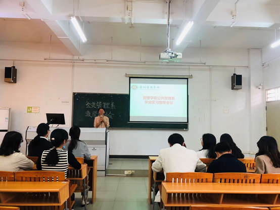 毕业实习指导会议由公共管理系副系主任张秀丽老师进行介绍。与各位毕业实习指导老师强调实习时间8周,实习协议可用就业协议、三方协议代替,盖章要一致等细节介绍。