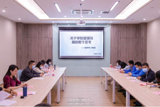 在太阳成集团tyc7111机构调整和人事安排完成之后,2022年11月8日下午2时30分,学院于教师发展中心互动室5举行管理干部培训会议,除疫情原因受限者外所有管理团队参会。