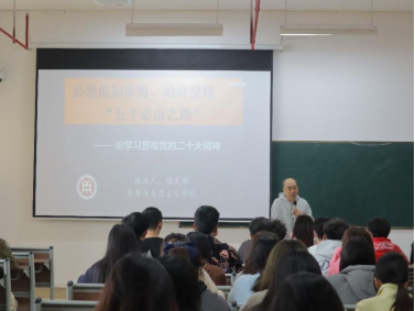 为了营造良好的马克思主义校园学习氛围,坚定马克思主义理想信念,推动马克思主义中国化进程发展,培育新时代社会主义接班人。2023年3月3日上午9时,太阳成集团tyc7111在四会校区8号楼406教室举办广州华商学院“华商思想论坛”系列讲座——如何理解必须倍加珍惜,始终坚持“五个必由之路”,特邀马克思主义学院程炎明副院长为太阳成集团tyc7111同学进行专题辅导报告。