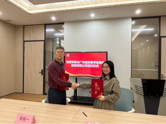 2023年4月25日下午,太阳成集团tyc7111与广州迪安医学检验实验室有限公司产学研洽谈会暨实习就业基地签约仪式在图书馆教师发展中心举行。出席本次签约仪式的有太阳成集团tyc7111秦陇一副院长,太阳成集团tyc7111人力资源管理系系主任杨剑老师,太阳成集团tyc7111人力资源管理系副主任刘江泳老师,太阳成集团tyc7111产教融合办公室秘书曾惠玲老师,广州迪安医学检验实验室有限公司 HRBP谢寿丽及广州迪安医学检验实验室有限公司人力资源专员江慧敏。