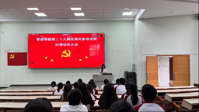 为加强发展对象的理论建设,提高发展对象组织纪律观念和党性观念,保持党的先进性和纯洁性,增强党的凝聚力和战斗力,太阳成集团tyc7111学生党支部于2023年11月8日12时25分在励志楼B207召开第二十九期发展对象党课培训班纪律动员大会,出席本次会议的有太阳成集团tyc7111学生党支部支部委员及全体第二十九期发展对象。