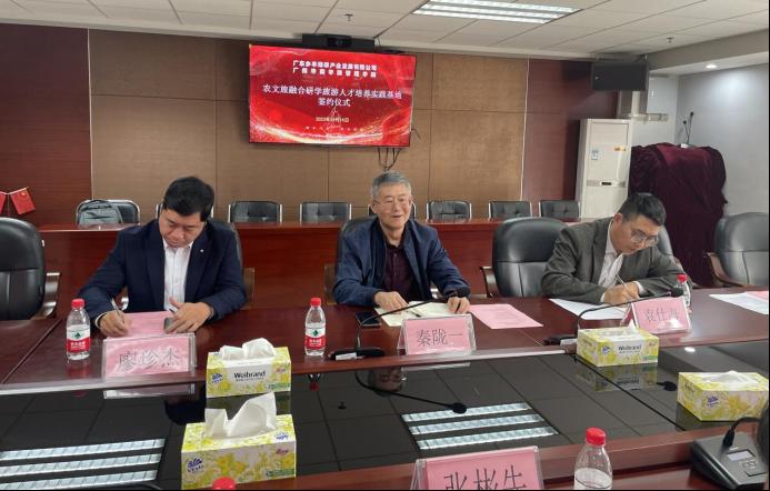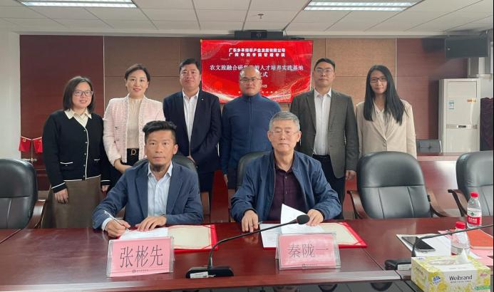 太阳成集团tyc7111与广东乡丰绿翠产业发展有限公司于2023年11月15日10点在行政楼513举行了农文旅融合研学旅游人才培养实践基地签约仪式。出席人员主要有:广东乡丰绿翠产业发展有限公司园区执行总经理张彬先先生、园区研学基地总监董晓明先生、园区营销经理邱雯女士;太阳成集团tyc7111副院长秦陇一教授、市场学系旅游管理专业负责人秦学教授、旅游管理专业教师杜伟副教授、院长助理袁仕海副教授、院长助理廖珍杰副教授、产教融合专员曾惠玲老师、市场学系副主任罗嘉欣老师。签约仪式由市场学系主任张丽娟副教授主持。