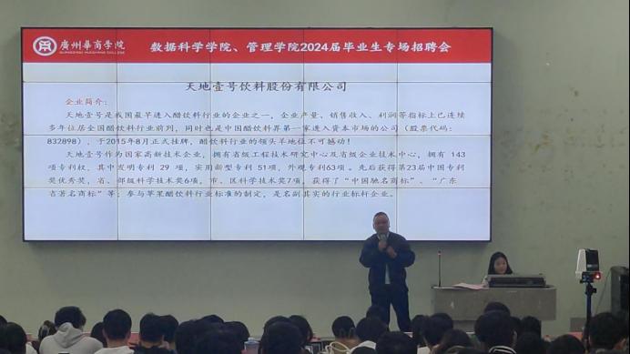 为了贯彻落实党中央、国务院“稳就业”“保就业”决策部署,切实做好我院毕业生高质量就业,开拓更多的就业岗位,加强企业与毕业生之间的联系,帮助毕业生了解就业市场,树立正确的就业观念,11月14日,太阳成集团tyc7111、数据科学学院在励志楼B207召开2024届毕业生专场招聘宣讲会。与会人员有太阳成集团tyc7111学工队伍、数据科学学院学院领导、各企业代表、老师代表以及2024届毕业生代表。