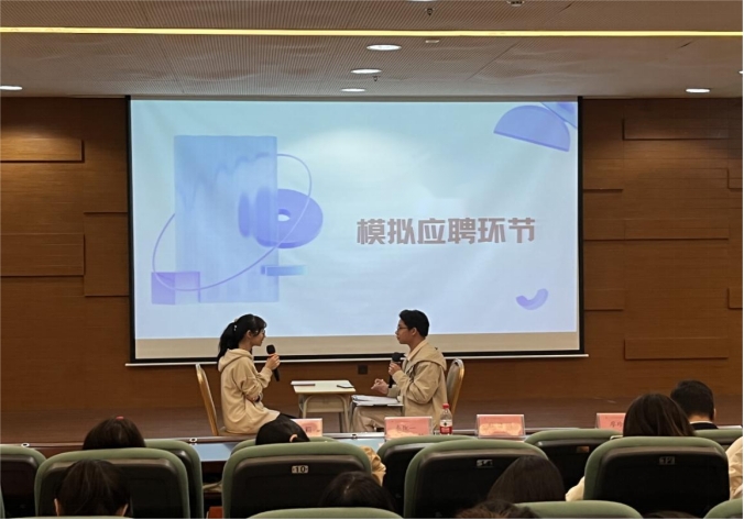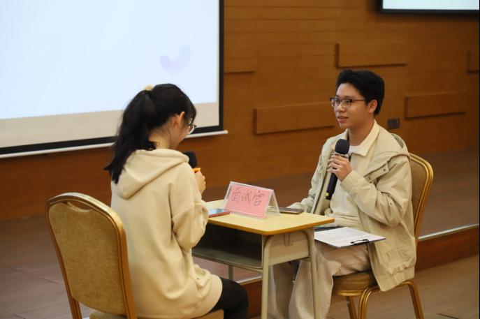 为了帮助同学们更好地掌握专业规划的技能,本次讲座特别安排了“模拟应聘及专家点评”环节,邀请杜绪明主席为模拟应聘的同学们进行点评与指导。现场同学们踊跃参与,积极表现。