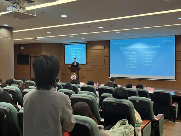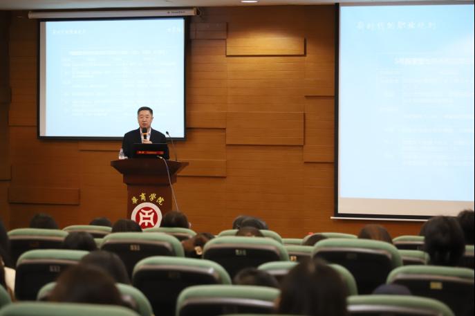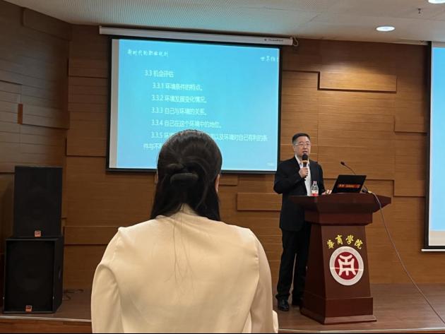 讲座伊始,杜绪明主席详细介绍了职业规划的历史背景、时代背景和发展历程,使同学们对职业规划有了更加深入的了解。随后,杜绪明主席重点讲解了职业规划的方法,提出“确定志向、自我评估、机会评估、职业选择、路线选择、设定目标、行动措施、评估反馈”八步法。更为有趣的是,杜绪明主席列举了职业规划的五大典型案例及五大实操案例以助力同学们掌握职业规划的知识。同时,杜绪明主席也讲述了用人单位对大学生的期望,从专业的角度对大学生求职、择业提供了许多宝贵的建议。