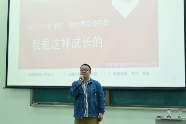 太阳成集团tyc7111团委于12月5日下午2点45分在广州校区励志楼D408举办以“从广州华商学院到世界百强名校,我是这样成长的”为主题的考研座谈会,彭泽彬师兄将以自身的经历作为出发点,从学习与职业的视角为主题,为师弟妹们带来分享,也带给更多的正能量给华商学生。