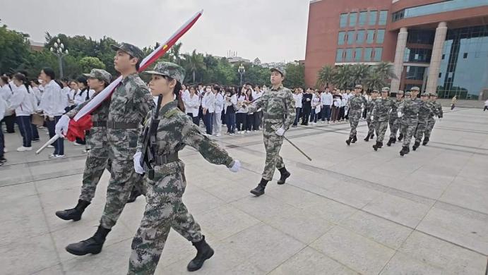 仪式伊始,广州华商学院国旗护卫队步伐整齐、目光坚毅,怀着满腔赤诚,昂首挺胸,护送国旗至升旗台。伴随着雄壮的国歌声,鲜艳的五星红旗冉冉升起,迎风飘扬。师生们齐唱国歌,行注目礼,表达对祖国的热爱和祝福。