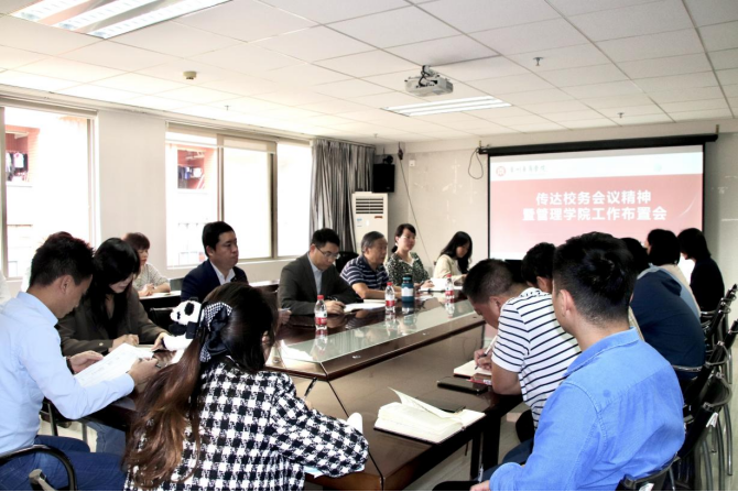 廖珍杰副院长汇报了学院专业带头人、工商管理重点学科、教育部课题申报、科研项目指南建议征集、科研机构、实验室建设及创新创业等工作的开展情况,并对标合格评估要求,提出要加强专业带头人引进工作,工商管理重点学科的提质升级,科研团队的建设和实验室筹建的设想。