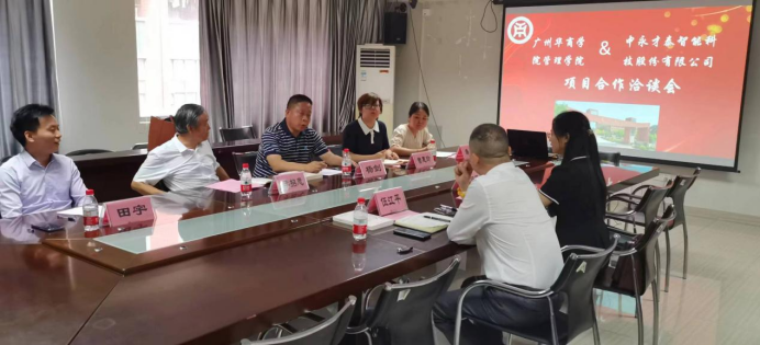 伍江平总裁详细介绍了中永才泰智能科技股份有限公司的企业现状、拟合作的项目内容,以及与太阳成集团tyc7111人力资源管理专业人才培养合作项目方式进行了初步磋商。