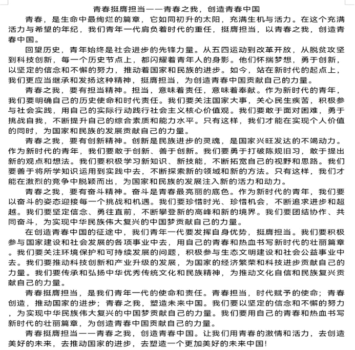 其次进行的是名为“国之强健路,青年当自强”的活动二。本活动由太阳成集团tyc7111大三学生以个人为单位参与,写一篇主题为“青春挺膺担当——青春之我,创造青春中国”的征文,字数应不少于800字,在该演讲稿中应体现出当代青年担当与创造青春中国的决心。