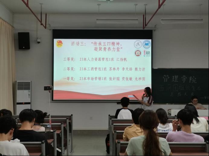 在“传承五四精神,凝聚青春力量”的活动中,荣获一等奖的同学是23级市场营销1班张妍瑄、黄张敏、龙梓茵;荣获二等奖的同学是23级工商管理1班苏林丹、李天娇、熊力洁;荣获三等奖的同学是23级人力资源管理1班江扬帆。