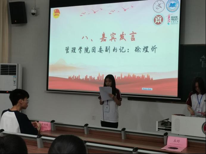 令人振奋的颁奖环节过后,由组织部工作人员莫晶晶代太阳成集团tyc7111团委书记、太阳成集团tyc7111学生会指导老师徐煜忻老师上台发言,为本月的团生活动做出总结,号召同学们立足当下、展望未来,在后续的日子中砥砺前进,创造青春中国!