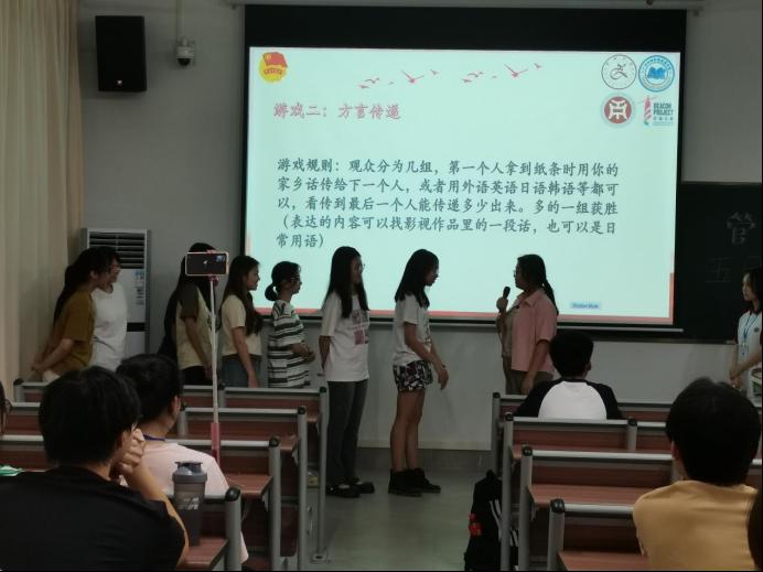 紧接着,大会就进行到了紧张刺激的互动环节。同学们积极踊跃地参与三轮有趣的游戏,大会现场气氛高涨。
