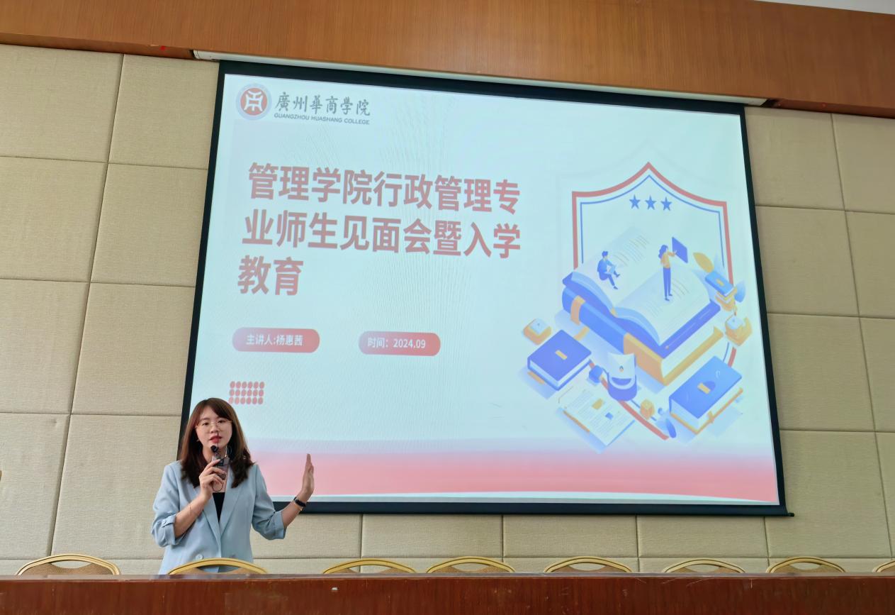 此外,杨惠茜主任还特别介绍了公共管理系丰富多彩的校园文化活动及各类学科竞赛。她详细介绍了学术大讲堂、志愿服务等文化活动,以及公共政策案例分析、创新创业等竞赛项目,鼓励新生们积极参与,通过实践活动和竞赛提升自己的专业能力和团队协作精神。
