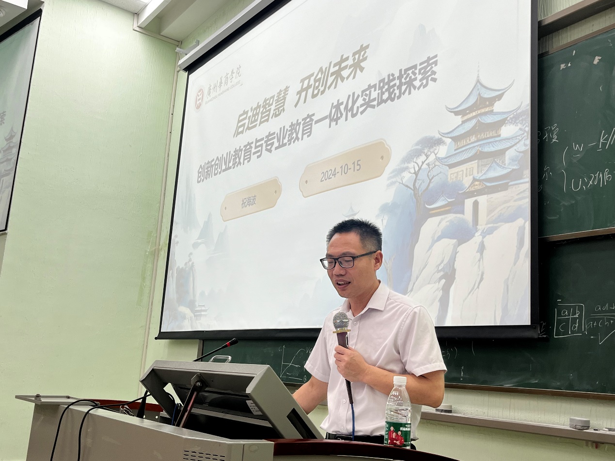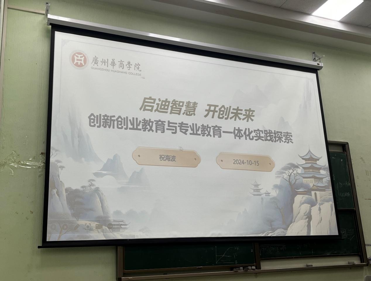 2024年10月18日(周五)上午,创新创业教育与学生素质培养系列讲座在广州校区励志楼A208顺利开展,中南林业科技大学生态营销研究所所长、绿色发展与可持续制造研究生联合培养产融基地及生态教育品牌建设实践教育中心首席专家祝海波教授应邀开讲主题为“创新创业“道”与术”的主题讲座。讲座由市场学系专任教师刘艺主持,市场学系专任教师李思敏,双创秘书王梓辰及学校各级学生共计100余人参与讲座。