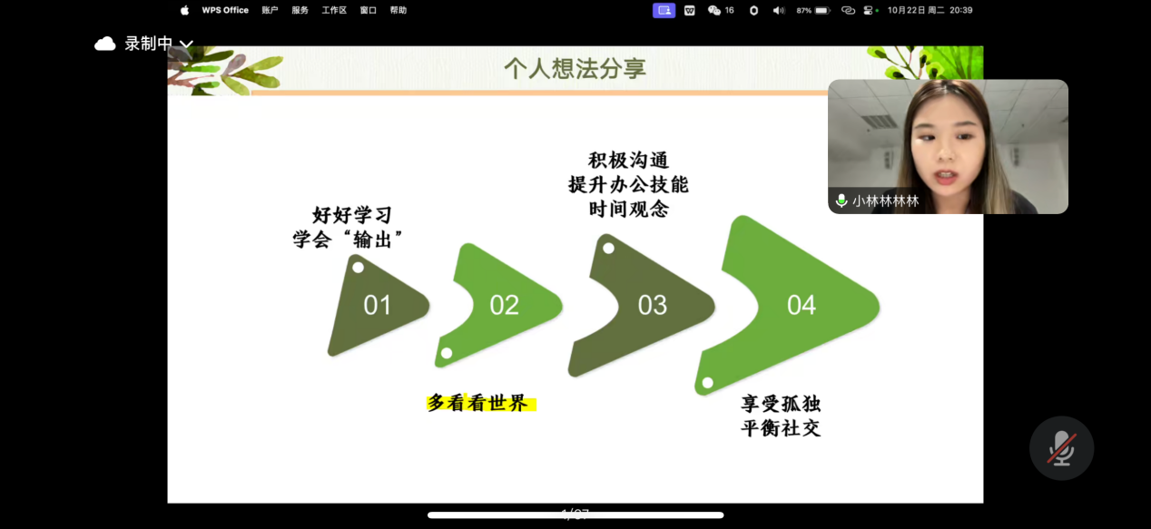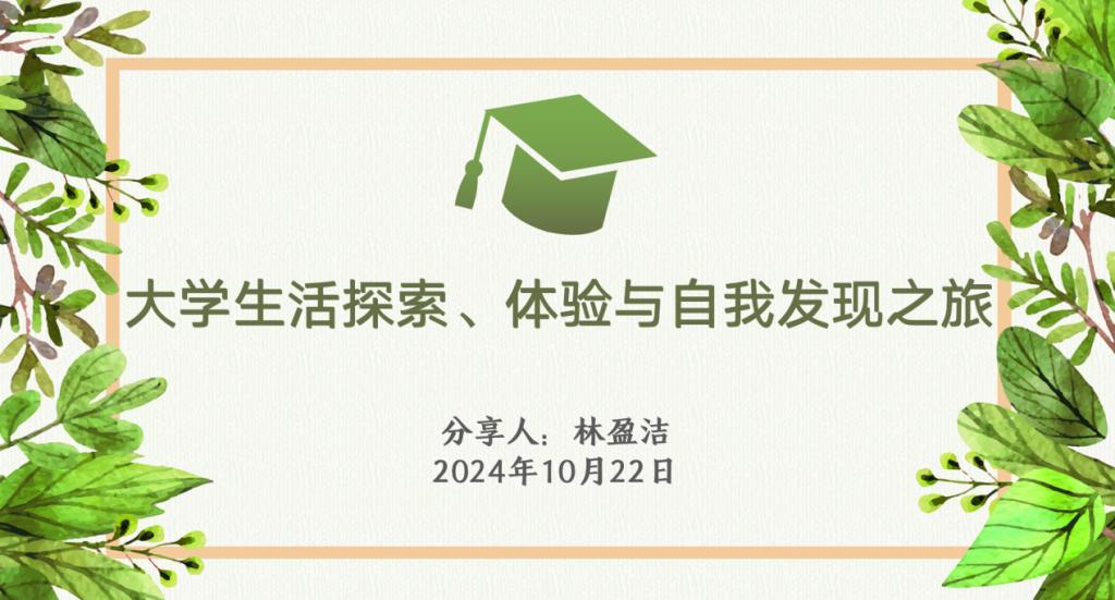 为引导我校学子精准定位未来奋斗目标,科学规划大学四年学习生涯,太阳成集团tyc7111携手校友办于2024年10月22日19时30分倾心打造了一场主题为“大学生活:探索、体验与自我发现之旅”的精彩分享会。本次分享会采用腾讯会议线上平台进行,荣幸邀请到2022届杰出校友林盈洁学姐担任主讲嘉宾,与我校学子共话成长之路。