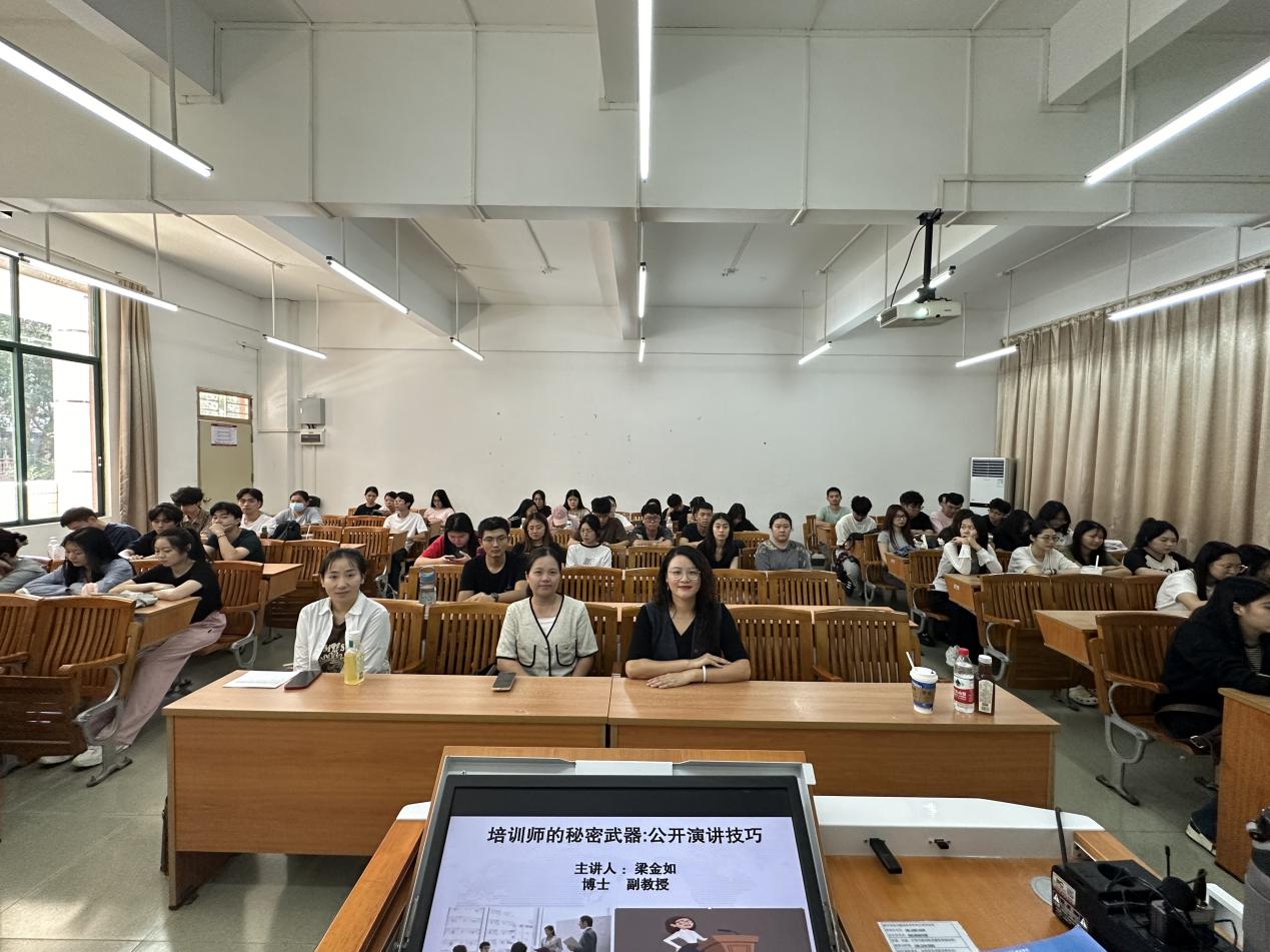 在10月22日下午2:10分,广州华商学院励志楼C303内,一场备受瞩目的讲座《培训师的秘密武器:公开演讲的技巧》圆满落下帷幕。本次讲座荣幸邀请到广东省人力资源研究会理事会员、人力资源管理领域的资深学者梁金如副教授作为主讲嘉宾。
