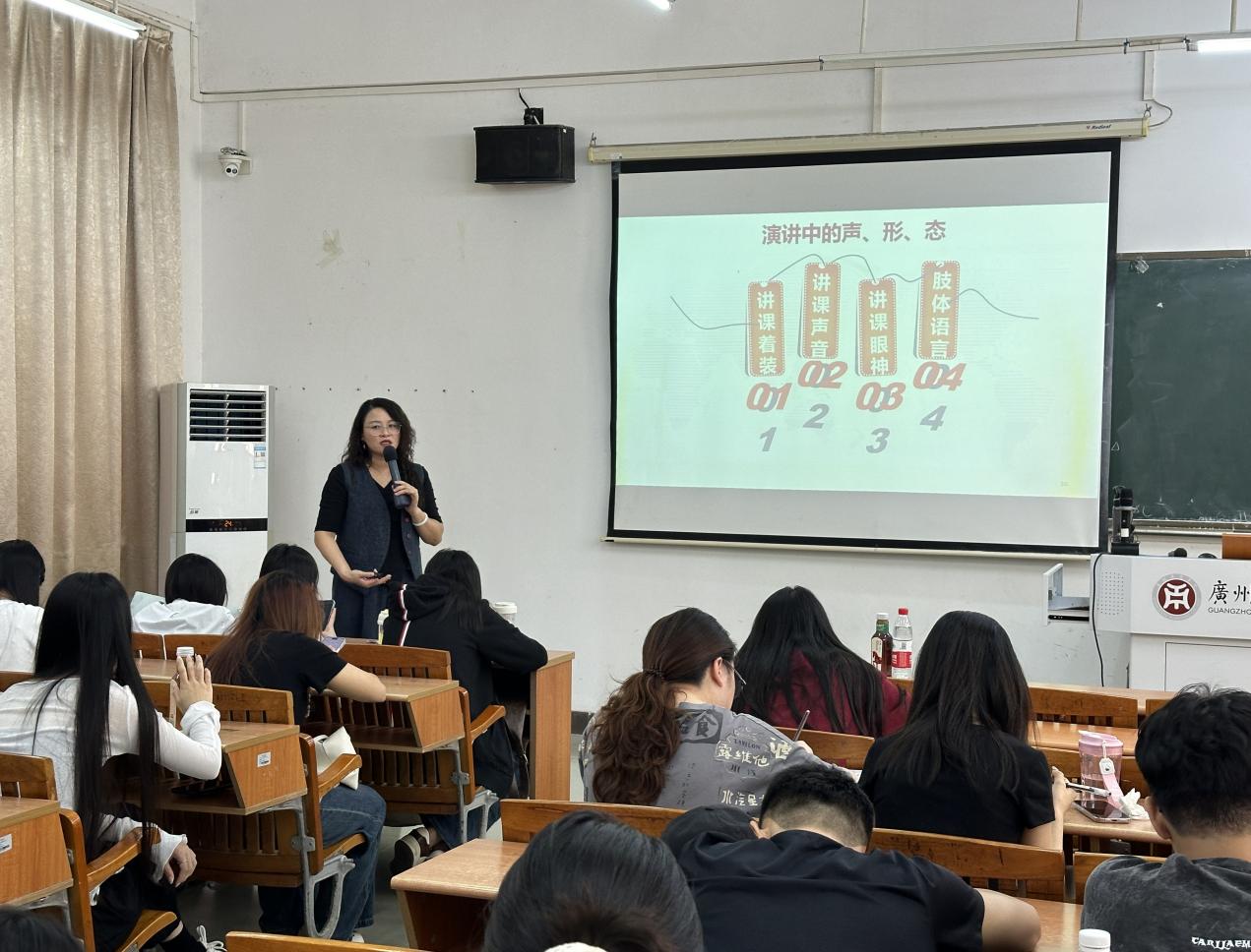活动现场,同学们的热情仿佛广州秋日里的暖阳,热烈而充满生机。随着讲座的序幕缓缓拉开,梁教授以她那温和而富有魅力的嗓音,向在场的每一位同学娓娓道来了本次讲座的核心议题——“如何更有效地进行演讲并掌握关键技巧”。她首先从更广阔的视角出发,细致阐述了岗前培训的价值所在,特别强调了演讲技巧在职场竞争中的核心地位,无论是对于即将步入职场的应届毕业生,还是对于那些已经在职场中奋斗的专业人士,都至关重要。