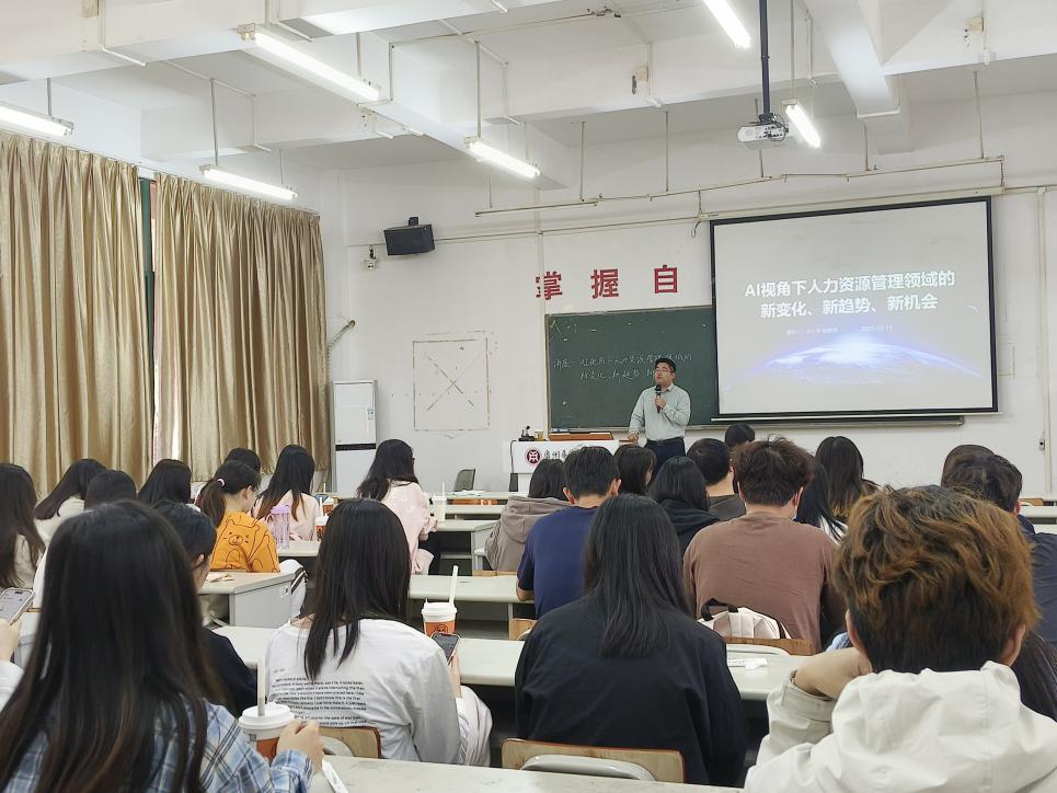 在这个科技日新月异的时代,人工智能正以前所未有的速度影响着各行各业,人力资源管理领域也不例外。2025年3月11日下午14:20,华商学院励志楼A202教室里,一场关于“AI视角下人力资源管理领域的新变化、新趋势、新机会”的专题讲座如期举行,吸引了众多在校学生的热情参与。本次讲座由李左声副教授、博士主讲,他不仅是一位在人力资源管理领域深耕多年的学者,更是对AI技术如何重塑该领域有着独到见解的先行者。