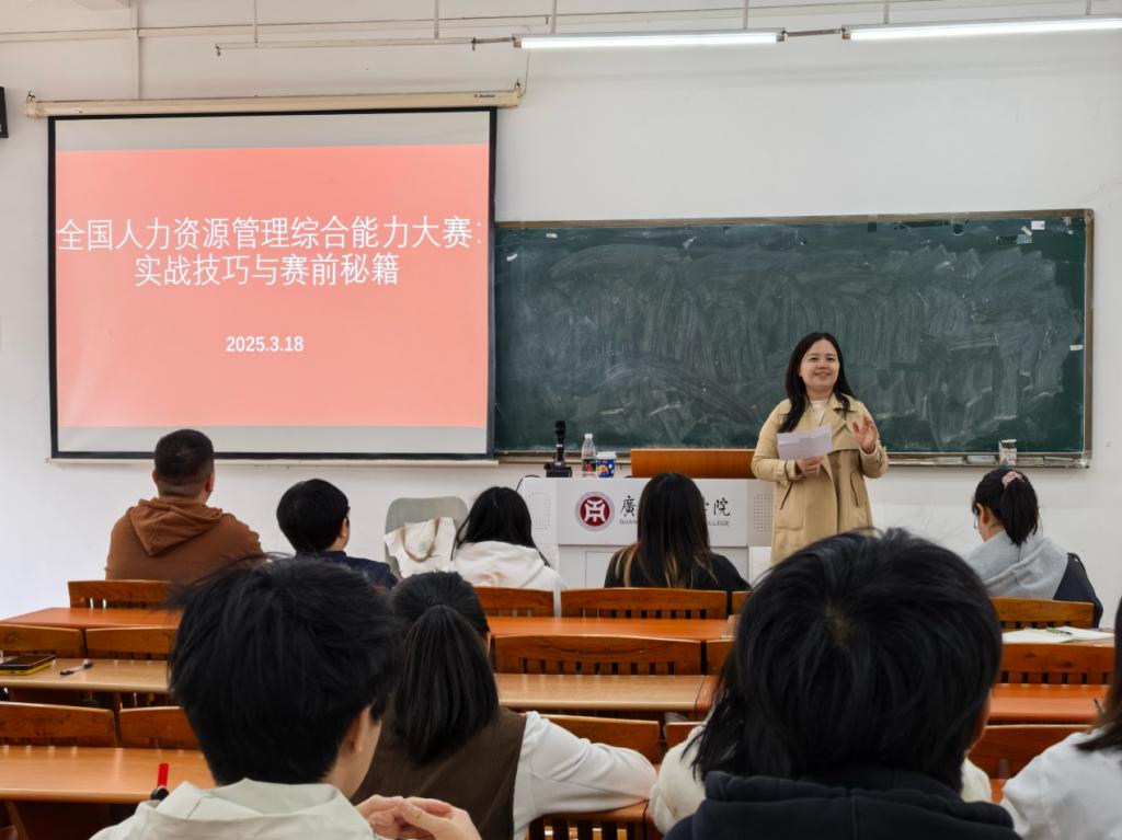 2025年3月18日下午,太阳成集团tyc7111在励志楼C302成功举办了一场题为“全国人力资源管理综合能力大赛:实战技巧与赛前秘籍”的讲座。本次讲座旨在为即将参加第十届全国人力资源管理综合大赛的学生们提供专业的赛前指导和实战技巧,帮助他们更好地备战大赛。