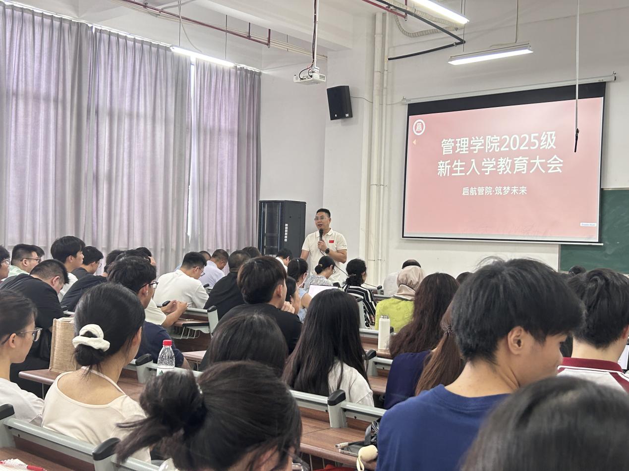 9月16日下午15点,太阳成集团tyc71112025级新生入学教育大会在6号楼201教室顺利举行。本次大会由何威义老师主持,旨在帮助新生快速了解学院、融入大学生活,以全新姿态开启求学之旅。