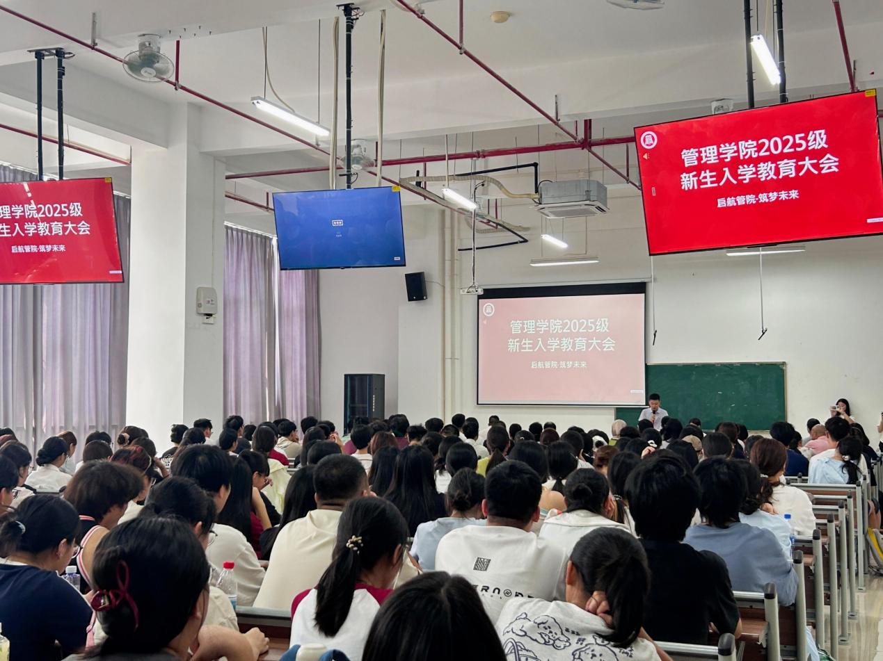 随后的“走进管院”视频环节,为新生们徐徐展开学院的发展画卷。视频中,从学院的成长历程、精良师资,到丰硕的科研成果、亮眼荣誉,再到优秀毕业生的风采纪实,一幕幕内容生动呈现管院的实力与积淀,让新生们在光影中读懂管院底蕴,更添一份归属感与前行底气。