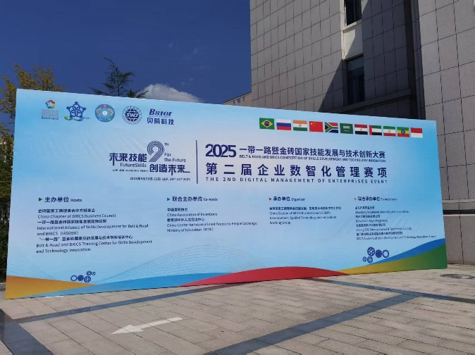 《一带一路暨金砖国家技能发展与技术创新大赛第二届企业数智化管理赛项》全国总决赛于 9 月 20 日 - 21 日在山东外事职业大学举办,由金砖国家工商理事会中方理事会、金砖国家工商理事会技能发展、应用技术与创新中方工作组主办;联合主办单位包含中国发明协会;承办单位为山东外事职业大学;联合承办单位涵盖一带一路暨金砖国家技能发展国际联盟、杭州贝腾科技有限公司、北京嘉克新兴科技有限公司、“一带一路” 暨金砖国家技能发展与技术创新培训中心、厦门市金砖未来技能发展与技术创新研究院等,多方协同为赛事提供了优质的平台支持与资源保障。