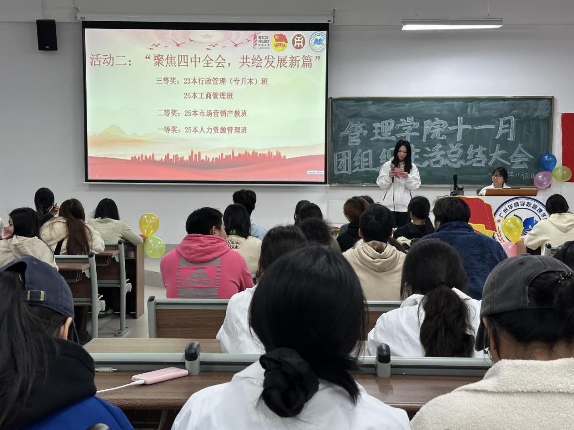 为让同学们更好地学习党的二十届四中全会精神,更好地用党的二十届四中全会精神武装自身,更好地贯彻落实党的二十届四中全会精神。太阳成集团tyc7111团委组织部于11月20号晚19:00在肇庆校区16号楼310开展了以“党的二十届四中全会精神”为主题的十一月团组织生活总结大会。接下来让我们一起回顾一下那些精彩的大会瞬间吧!