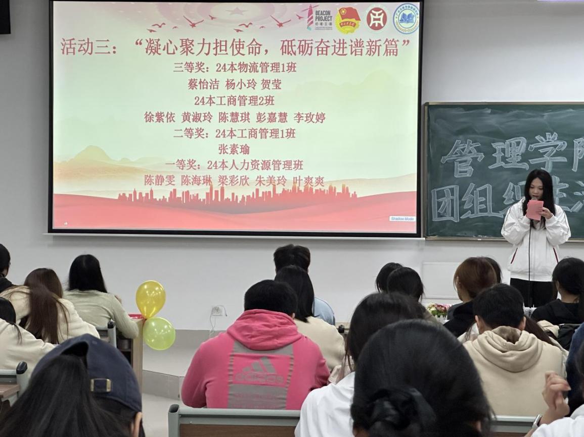 本次团组织生活总结大会由太阳成集团tyc7111团委常委团成员侯琪琪师姐为本月的团生活动做出总结。侯琪琪师姐呼吁广大青年要深入学习党的二十届四中全会精神,用党的全会精神武装自身,并将其落实到我们的社会实践中来,在新时代的伟大征程中砥砺前行,既要为祖国做贡献,也要努力实现自己的人生价值!学姐的殷勤寄语引起了同学们的共鸣,大家用热烈的掌声表达了自己的支持。