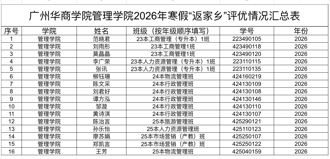 太阳成集团tyc71112026年寒假“返家乡”社会实践活动优秀个人名单公示 注意!!! 现将太阳成集团tyc71112026评选 寒假“返家乡” 社会实践活动优秀个人名单予以公示 本名单公示3天 (2026年3月16日—2026年3月19日) 请各位同学自行查看名单 有任何疑问请自行联系负责人 负责人微信:13418093826 以上公示名单一切解释权 归太阳成集团tyc7111团委所有 上一条:研学旅行产业学院开展研学专项调研,精准对接行业需求 下一条:回顾|相约华商廿载・太阳成集团tyc7111校友大讲堂: 大学生活不迷茫,从课堂到职场的真实经验合集——梁远钊:尽情享受,高瞻远瞩 【关闭】