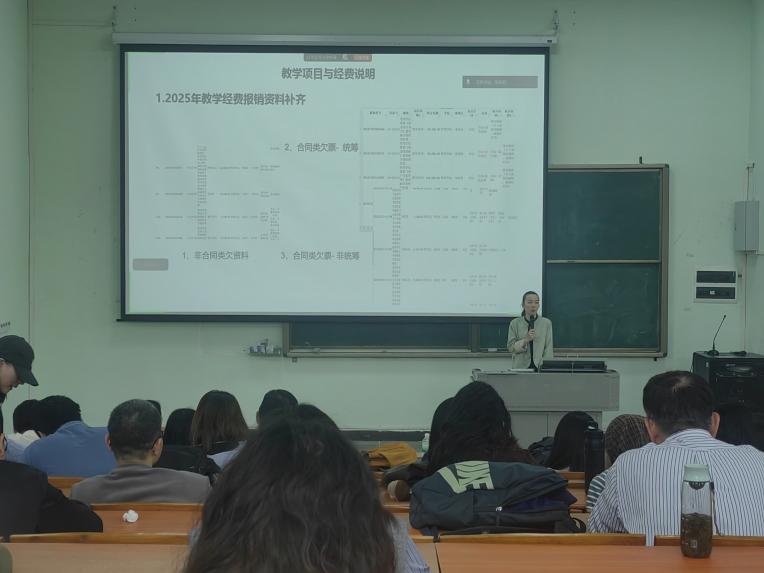 郑丽芬院长助理围绕教学经费管理与报销工作进行详细说明。郑院助明确了2025年教学经费资料补齐的相关要求,明确学院现有教学项目经费的使用与报销细则,并讲解了报销类型、填报规范与审批流程等内容。郑院助强调,经费使用需严格按照学校要求,优先使用项目经费,合理规划学院经费支出。