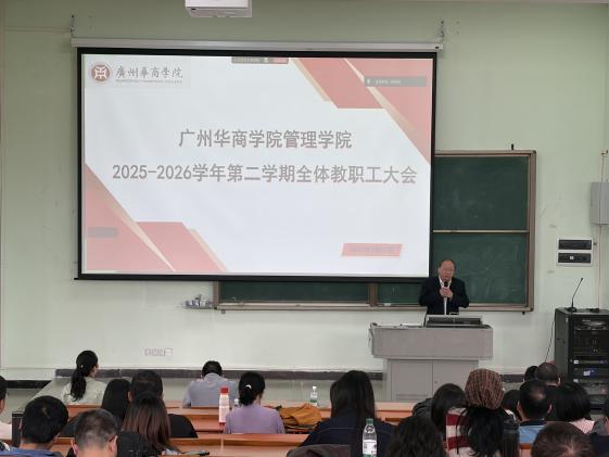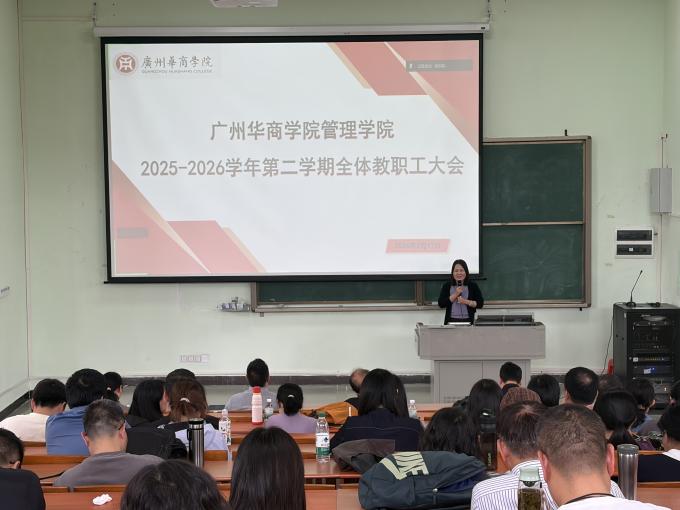 2026年3月17日,太阳成集团tyc7111在广州校区励志楼D300和肇庆校区16号楼408同步召开2025-2026学年第二学期全体教职工大会。本次会议围绕总结2025年工作,部署新学期工作重点为核心,全面梳理2025年学院各项工作的成效与短板,规划新学期发展目标和工作任务,为新学期学院教学科研、人才培养等各项工作高效推进筑牢基础。学院领导及全体教职工参会,会议由院长助理潘思媚主持。