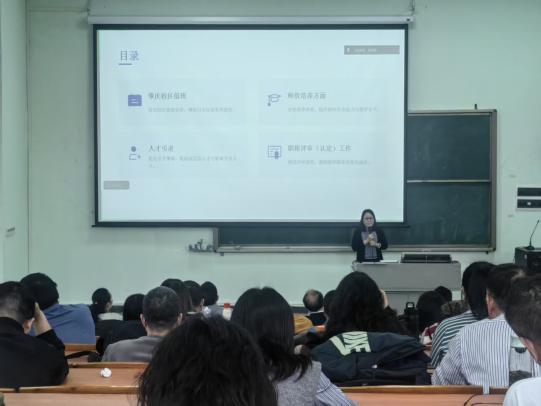潘思媚院助围绕肇庆校区管理、师资培养、人才引进等工作进行了汇报。她指出新学期将以肇庆校区值班为抓手,提升学院教学管理服务水平;号召教职工积极参与教师发展中心举办的项目,并强调教师下企业锻炼的重要性;人才引进方面,潘院助提出学院将继续推进高层次人才引进工作,鼓励教职工积极推荐优秀的人才;最后,潘院助总结了2025年职称评审工作,要求全体教职工认真学习职称评审文件,尽早做好个人发展规划。
