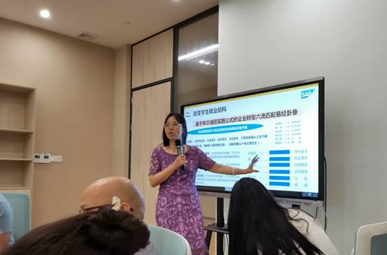 王惠芬教授做了题为:《依托SAP建设数字化新商科》的主题报告,她认为,信息化时代催生了SAP引领数字化人才的需求,通过SAP系统能够改变学生就业结构,促进教师进入SAP全球大学联盟生态,扩大数字化社会服务的深度和广度。广州赛意信息科技股份有限公司林立岳副总经理介绍了该企业数字化服务策略、数字化解决方案、SAP软件供应商的基本特点及企业招聘咨询顾问岗位要求。