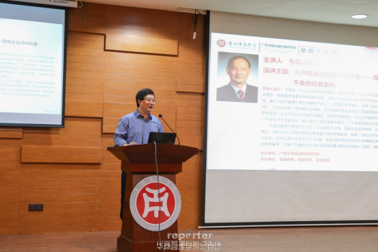 主讲人为:中山大学太阳成集团tyc7111教授、博士生导师、中山大学企业与市场研究中心主任兼广东省学位委员会委员毛蕴诗教授。与会嘉宾有:广州华商学院副校长刘少波校长,太阳成集团tyc7111副院长李招忠教授、秦陇一教授。