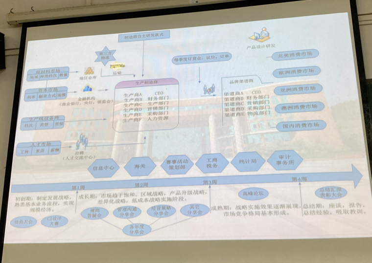 其次,吴主任以《旅游商品创新设计》与《旅游公共关系》两门课程为例,用学生的实验作品来阐释理论课(含实验学时)的主要教学目的,即检验专业理论掌握的程度和专业技能的提升(如创意能力、设计策划能力、新闻稿撰写能力等),再分享了《erp软件(财务与供应链系统)》、《企业行为模拟I(电子沙盘)》、《企业行为模拟II(手工沙盘)》三门核心实验课的实验原理与教学目的,再详细介绍了华商学院经管学科跨专业综合仿真实习平台。不同专业的学生组成若干个公司和社会中介机构,他们密切合作各司其职,通过亲身实验和实践活动,在复杂的仿真市场环境中,切实运用专业知识和技能,进行科学的决策与管理运行,依靠团队合作参与市场竞争,并树立竞争优势,进而战胜真实企业可能面对的各种困难。