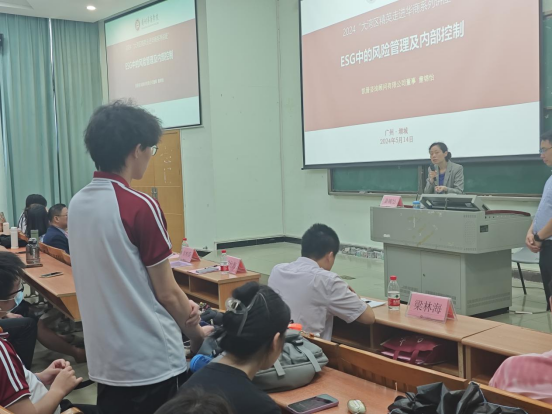 讲座末尾,童锦怡女士与学生们进行了互动交流,耐心解答了他们提出的问题。她鼓励学生们在未来的学习和工作中,积极关注ESG和风险管理,为自己的职业生涯打下坚实的基础。