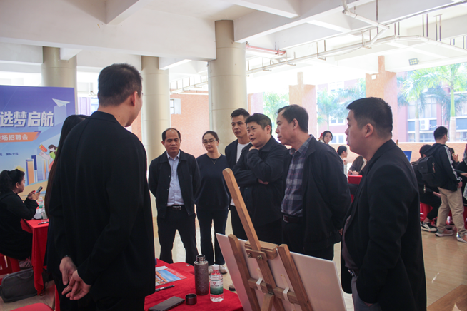 本次招聘会现场,学校与各学院领导深入一线,亲切与企业代表交流,详细询问岗位需求与市场趋势,精准把握行业动向;他们主动走近毕业生,耐心倾听求职心声,勉励同学们明确职业规划、树立长远眼光,以积极心态抓住就业机遇。同时,校领导与企业方围绕产教融合、协同育人展开务实探讨,共同探索校企联动新路径,着力推动人才供给与社会需求紧密对接,为毕业生更高质量就业持续拓宽渠道。