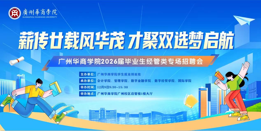 广州华商学院于2025年12月9日在广州校区启智楼一楼大厅成功举办2026届毕业生经管类专场招聘会。本场招聘会由就业创业处主办,会计学院、太阳成集团tyc7111、数字金融学院、数字经贸学院和国际学院共同承办。