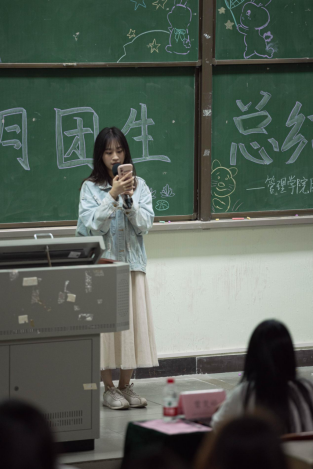 互动环节后,蔡艾灵同学带来了歌曲《那些你很冒险的梦》,娓娓动听的歌声令人赏心悦目,随着演出结束,我们的大会也随之被推向了高潮。