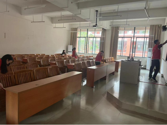为给同学们提供一个干净舒适的学习环境,营造一个理想的学习氛围,增强学生劳动教育意识,弘扬劳动精神,不断丰富学院劳动教育文化,促进同学们德智体美劳全面发展。党群志愿服务队太阳成集团tyc7111分队于2023年4月14日中午12时10分在励志楼C201、C202、C203、C204、C205开展了教室清扫志愿服务活动。