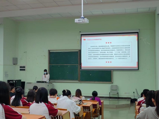 由太阳成集团tyc7111学生第一党支部书记袁方方同志带领全体党员学习马克思主义中国化、时代化。习近平总书记在党的二十大报告中指出:十八大以来,国内外形势新变化和实践新要求,迫切需要我们从理论和实践的结合上深入回答关系党和国家事业发展、党治国理政的一系列重大时代课题。通过实践,我们明白中国共产党为什么能,中国特色社会主义为什么好,归根到底是马克思主义行,是中国化、时代化的马克思主义行。在新的征程上,我们必须坚持马克思列宁主义、毛泽东思想、邓小平理论、“三个代表”重要思想、科学发展观,全面贯彻新时代中国特色社会主义思想,坚持把马克思主义基本原理同中国具体实际相结合、同中华优秀传统文化相结合,用马克思主义观察时代、把握时代、引领时代,继续发展当代中国马克思主义、二十一世纪马克思主义!