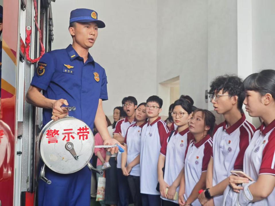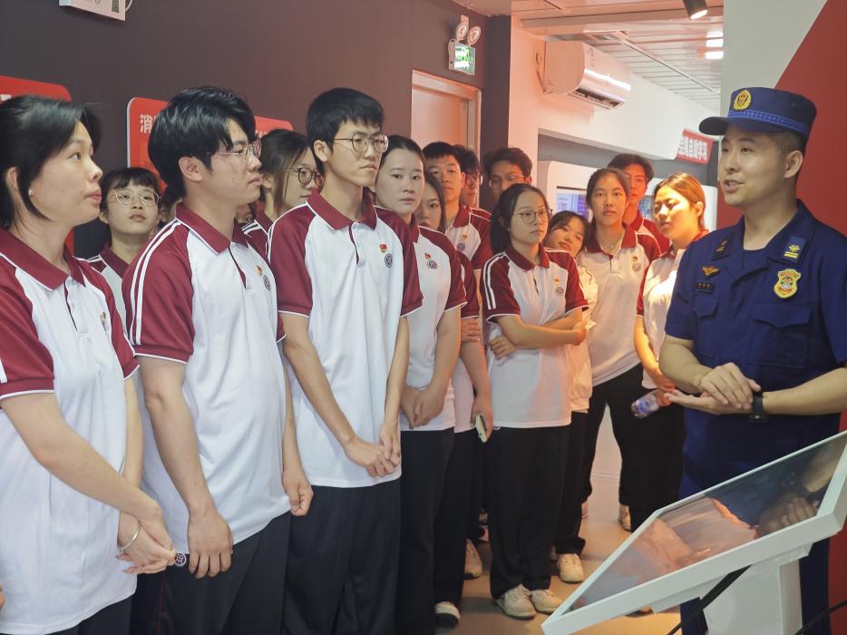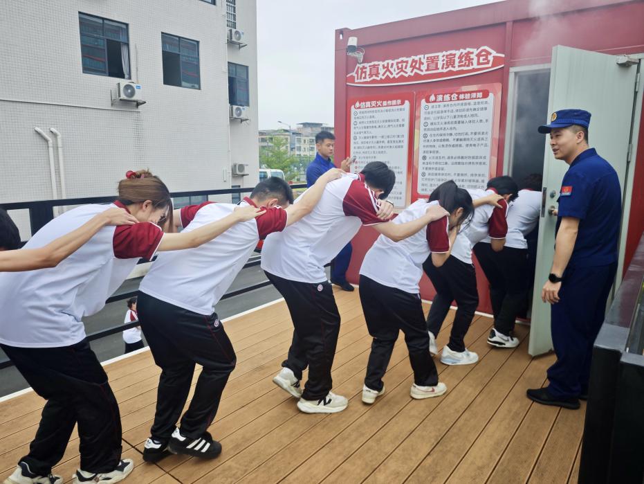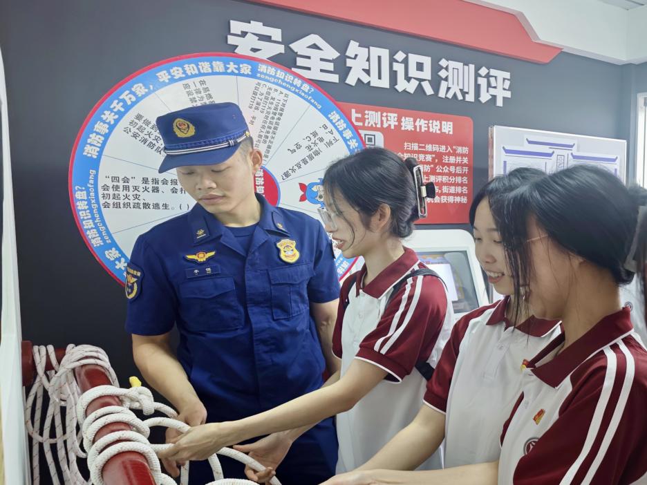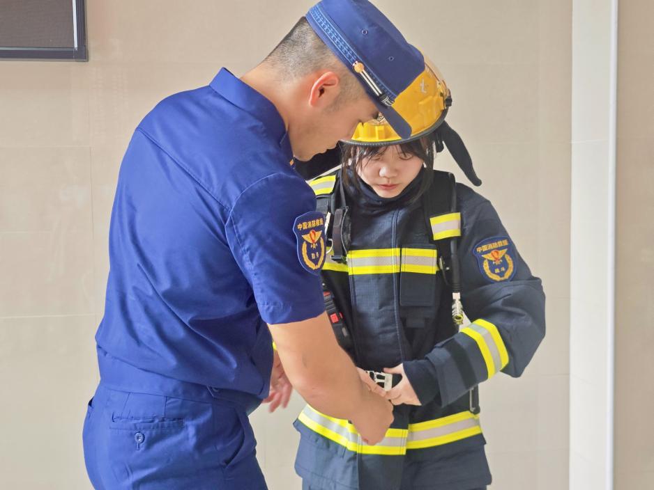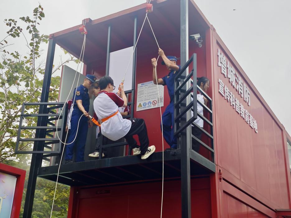 在实践体验环节,学生党员们积极参与各类互动活动。消防员详细讲解灭火防护服的防护原理,并指导学生试穿厚重装备,切身感受救援工作的艰辛;在消防车旁,大家认真聆听各类消防器材的功能与操作方法,近距离领略现代化救援装备的科技力量。在消防宣传科普教育基地,电气火灾成因实验直观揭示安全隐患,绳结技能教学强化应急实操能力。最令人印象深刻的是模拟逃生演练与高空缓降体验,党员们在逼真场景中弯腰捂鼻、有序撤离,并在专业保护下挑战高空缓降,沉浸式学习逃生技巧,在实践中深化了对消防救援工作专业性与危险性的认识,进一步激发了传承红色精神、践行使命担当的决心。