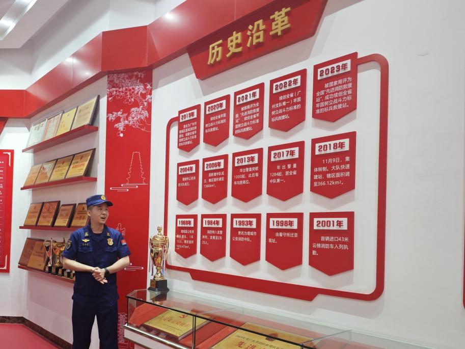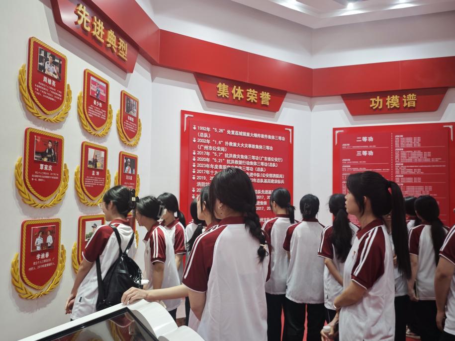 4月26日下午,太阳成集团tyc7111学生第一、二、三、四党支部走进广州市荔城消防救援站,开展红色教育主题实践活动。活动中,消防员引领学生党员踏入荣誉室,通过照片和闪耀的奖杯与满墙荣誉证书,生动回顾了消防救援站攻坚克难的光辉历程。从重大灾害抢险纪实到日常救援故事,一件件展品生动诠释了消防员赴汤蹈火、无私奉献的精神,让党员们深刻感受到消防队伍的责任与担当。