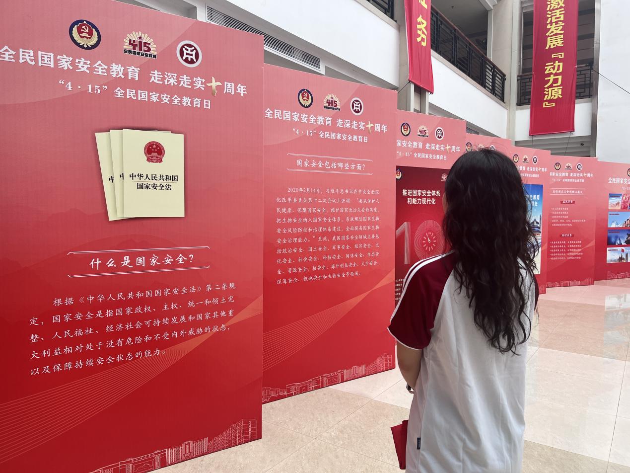 现场的国家安全相关知识宣传展板,精准宣传解读国家安全体系。本次展览以“全民国家安全教育 走深走实十周年”为主题,重点展示了总体国家安全观提出十年以来,国家安全体系和能力现代化水平显著提升,以新安全格局有力保障新发展格局所取得的一系列历史性成就。