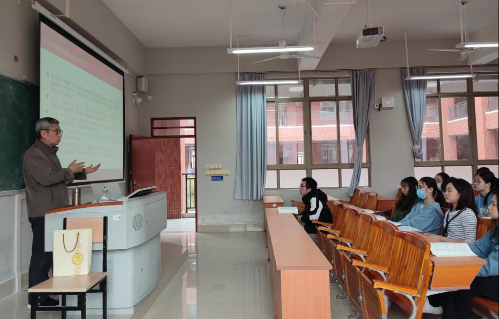 党的历史阶段分为新民主主义革命时期、社会主义革命和建设时期、改革开放和社会主义现代化建设新时期。平海教授为同学们一一详细讲解各阶段的起止时间和历史大事,并讲述了中国青年在其阶段所产生的作用和中国青年能够解救国家的方法。